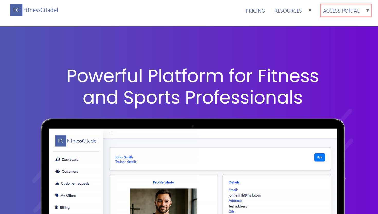 – Visit the Fitness Citadel home page and open the main menu. Hover over ACCESS PORTAL and click Trainer / Org Sign In fill out your credentials to Sign In to your account.