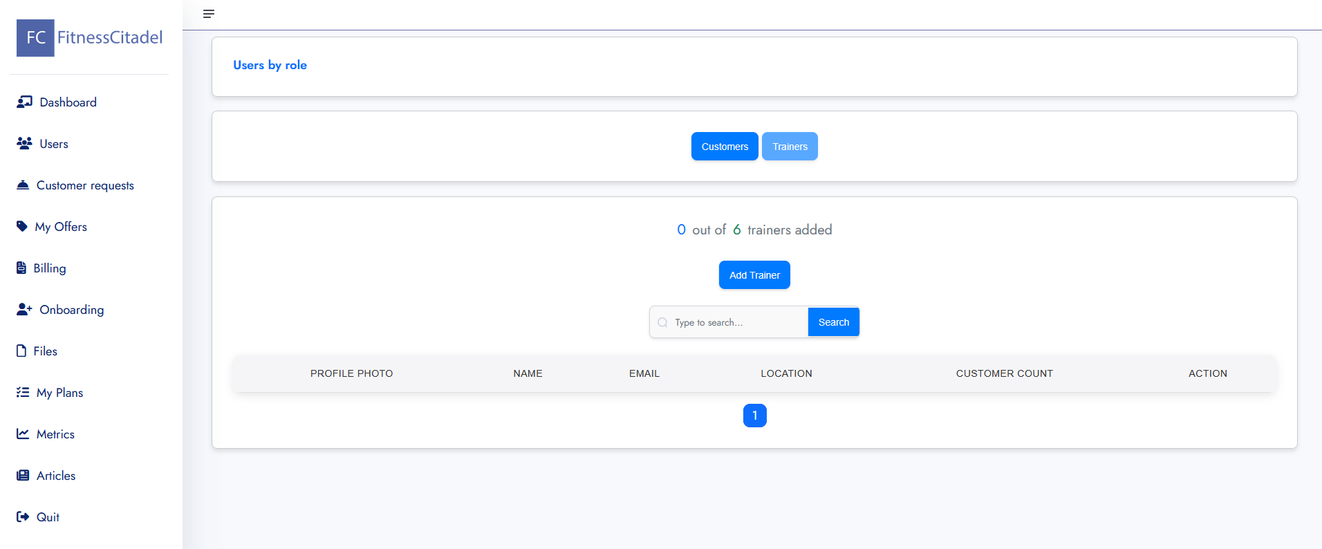You can easily switch between the Customers and Trainers tabs using the role selector.