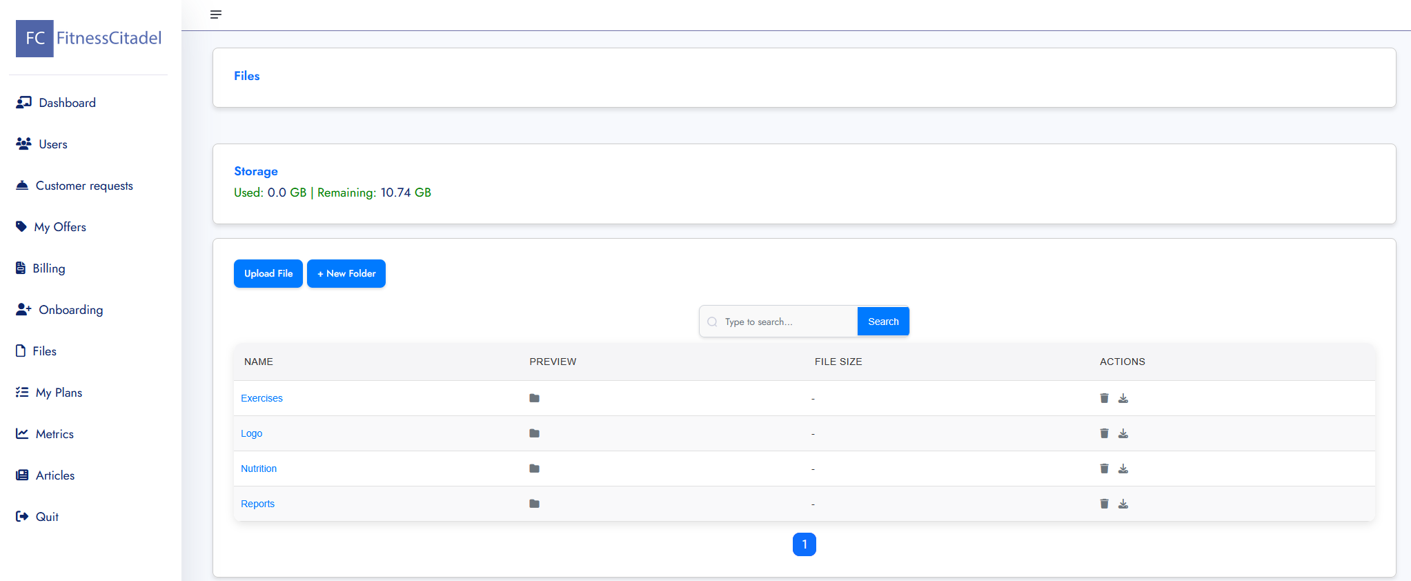 – The Files app allows you to manage your personal file storage space within the platform. You can upload and organize files into folders, such as images, documents, logos, and more.