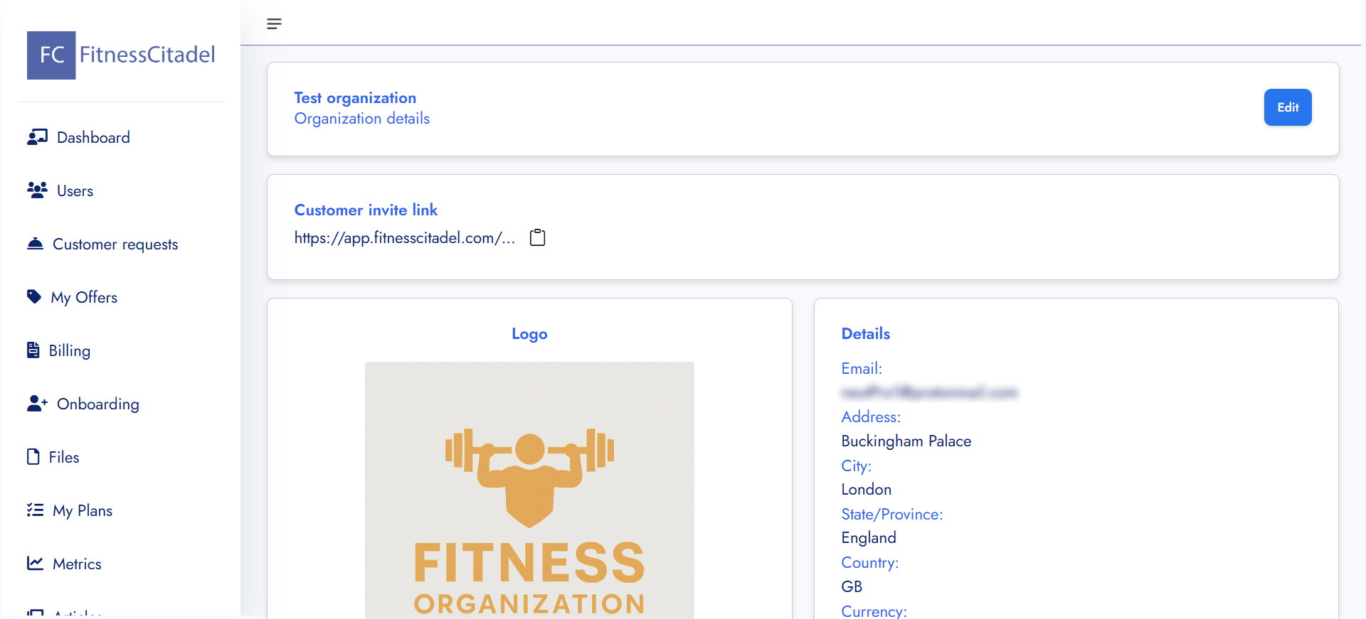 Below is a high‑level user guide for Organizaion of FitnessCitadel platform